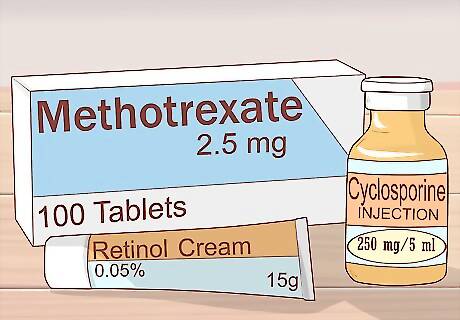 Begin systemic therapy. Systemic therapy can be given orally, by injection, or by infusion, depending on what specific medication your doctor prescribes. In many cases, systemic therapy won't be used unless other treatments don't minimize the plaque psoriasis. However, if you have severe plaque psoriasis, your dermatologist will likely recommend this treatment in addition to other treatments. Some medications that may be prescribed include: Methotrexate, Retinoids, Cyclosporine, and Biologic response modifiers.