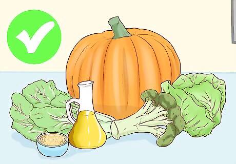 Eat a healthy diet. There are a variety of dietary changes that you can make that will help your plaque psoriasis. In general, try to cut out fatty and sugary foods and eat more healthy foods, such as vegetables and foods that are high in omega-3 fatty acids. Foods that are high in omega-3 fatty acids include fish, flaxseeds, olive oil, and pumpkin seeds. These will help to reduce inflammation. Avoid eating fatty red meats, dairy products, processed foods, refined sugars, and nightshade vegetables. Nightshade vegetables include potatoes, tomatoes and peppers. Try adding dietary supplements to your diet. Natural dietary supplements, such as fish oil, vitamin D, and milk thistle, can help ease your symptoms.