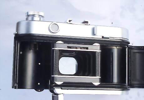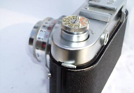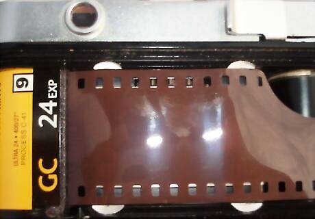 Turn the milled knob on the underneath of the camera until the film counter (on the front of the camera, just next to the viewfinder) reads the same as the number of exposures your film has, plus two. For 36-exposure films, turn it until the diamond mark is visible.