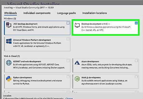 Download Visual Studio 2022. If you have not done so you can download it from https://www.visualstudio.com/downloads. Check the Desktop development with C++ workload box as you download. If necessary scroll down the page. Click "Language pack" and check "English" box. Set Up SDL with Visual Studio 2017 Step 3 Version 2.jpg