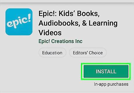 Install Epic from the Play Store. If you haven’t yet installed the app, here’s how to get it: Open the Play Store Android Google Play. Type epic into the search bar and press Enter. Tap Epic! Unlimited Books for Kids (the option with a blue icon that says ″epic!″ inside). Tap INSTALL.