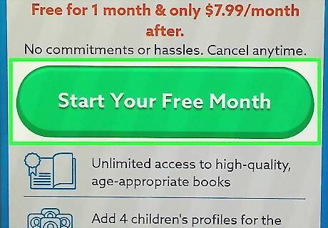 Start your free trial membership. A membership to Epic! is $7.99 (US) per month, but your first month will be free. You will be charged $7.99 at the end of the month if you fail to cancel the trial before then. To sign up, tap Start Your Free Month, and then follow the on-screen instructions to confirm your payment information.