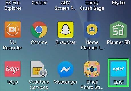 Open Epic. It’s the blue icon that says ″epic!″ inside. You should find it in on the home screen or in the app drawer.