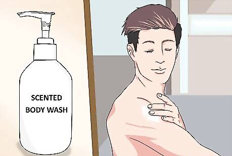 Use scented body wash after a workout. If you work out, try bringing foaming body wash to the gym. After a vigorous workout, use some foaming body wash in the gym shower with a pleasant scent. This will leave your skin feeling fresh and hydrated while also giving you a fresh scent. However, keep in mind some people are irritated by fragrant body wash products. Stop using scented body wash if you notice irritation.