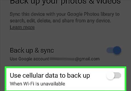 Make sure “Use cellular data to back up” is off. Otherwise, your phone will automatically back up your photos when you’re not on Wi-Fi. This can be costly!