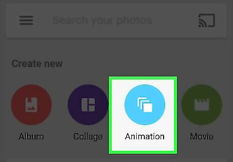 Choose “Animation” to create a short animation from your photos. Click or tap up to 50 photos to appear in your animation. Click or tap “Create” to view your animation.