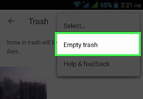 Remove photos from the Trash in Android. In Google Photos, tap the ☰ icon and select “Trash.” Tap the ⁝ menu and select “Empty Trash.”