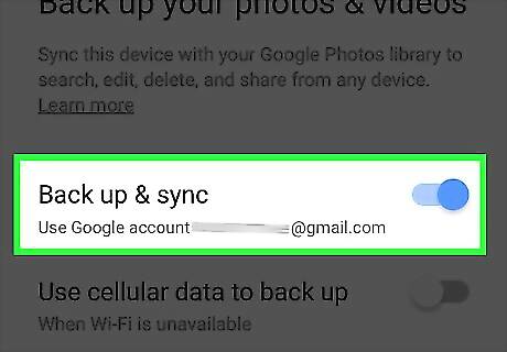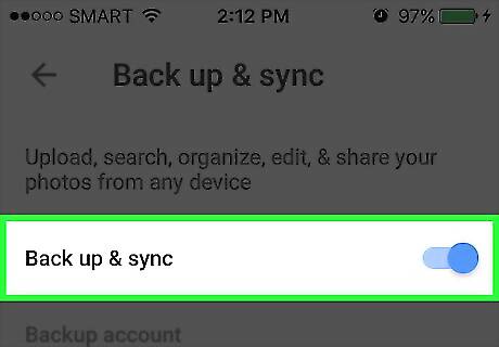 Make sure “Back Up & Sync” is on. This makes it so your photos automatically upload to Google Photos.