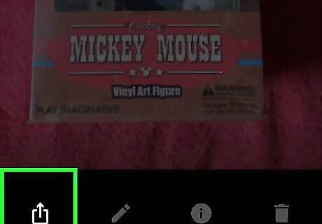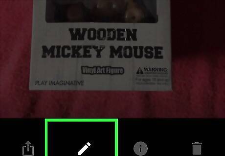 Tap a photo to see a larger version. While you’re viewing a photo in this mode, you can: Pinch to zoom in and out. Swipe left or right to view the next photo in that direction. Tap the Share icon to share the photo with other apps. Tap the Pencil icon to edit the photo. Tap the “i” icon to view photo details, such as the date it was taken and the size of the file. Tap the trash icon to delete the photo.