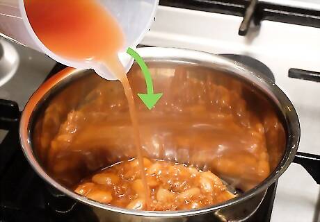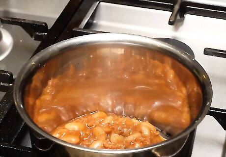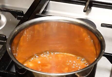 Add half a cup of tomato sauce or chicken stock. Chili thickens as it loses moisture in the refrigerator, so a splash of liquid will help return it to its original consistency. Be careful not to add too much liquid, or you could inadvertently make it soupy. Stir the liquid into the chili thoroughly before you begin heating it. Using tomato sauce or savory chicken stock as opposed to water will keep from diluting the rich flavor of the chili. If you prefer your chili extra thick, skip this step and reheat as usual.