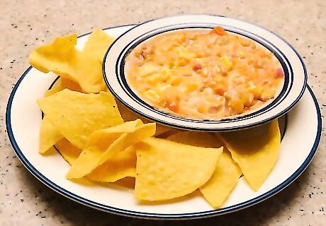 Put together a quick chili-cheese dip. Heat the contents of a jar of queso in the microwave, then combine with leftover chili. Feel free to add diced onions, tomatoes or green chiles for a chunkier dip. Serve with tortilla chips, or use it to smother burritos or enchiladas. To save a little time and money, you can also stir together a melted block of Velveeta cheese and can of Rotel before adding the chili. Stash leftover dip in the refrigerator in an airtight Tupperware container and use within 2-3 days.