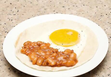 Have chili huevos rancheros for breakfast. Lightly crisp corn tortillas in a shallow oiled skillet. Slide one or two fried eggs on top and smother the whole concoction with chili. Huevos rancheros makes a quick, filling breakfast to throw together on frantic mornings. Garnish with a drizzle of crema, a few slices of avocado or a spoonful of salsa fresca. Serve huevos rancheros with a side of Spanish rice and black beans.