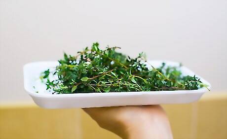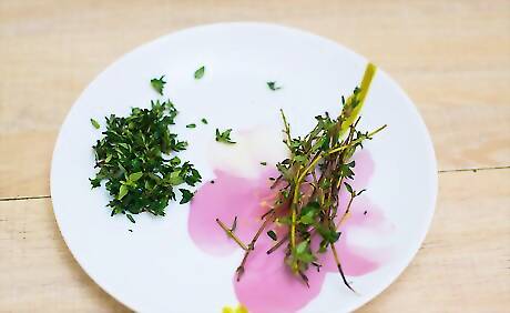Separate the leaves and stems. Remove the leaves from the stems with your fingers. Discard the stems.