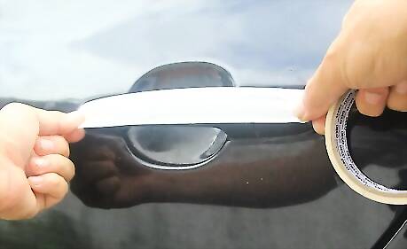 Tape off the areas you don't want painted. Use masking tape or painter's tape to tape off the areas you don't want painted. This usually includes areas near the tires, doors, handles, and so on.