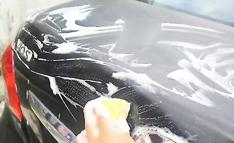 Clean your car. Never apply any type of paint to a dirty vehicle. Surface dirt, dust, and grime can easily get trapped under the paint if it's not washed off first. Either clean your car in your garage by hosing it down or take it to the car wash. Make sure there is no dirt, debris, road dust, or other grime on your car prior to cleaning. If you've never cleaned your car yourself before, test out your cleaner on a small portion of the car before applying it to the full car.