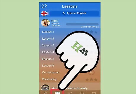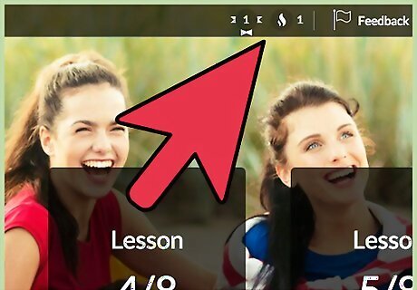 Review your lesson progress. Tap “Lessons” at the bottom of the page to see an overview of each lesson, including how much time you’ve spent on each and how many stars you’ve earned.