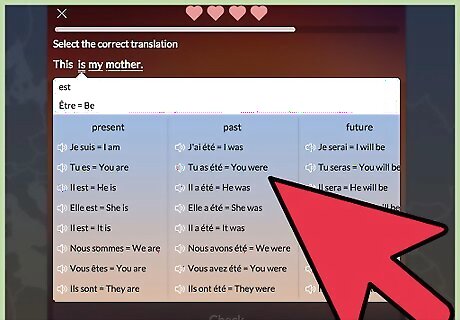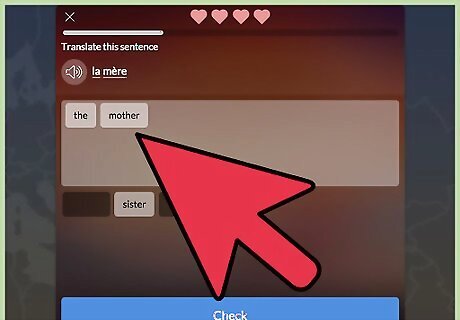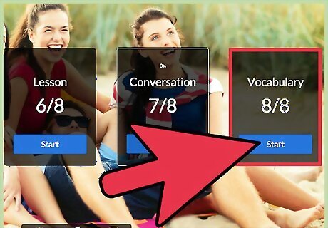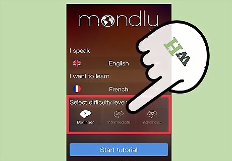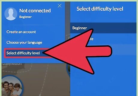 Adjust your difficulty. From the settings menu, click “Select Difficulty Level” and choose from beginner, intermediate, or advanced. The topics will not change, but questions will become more complex and have more possible answers as you scale the difficulty upwards. You can change difficulty after already starting a language to make it easier or harder as you go.