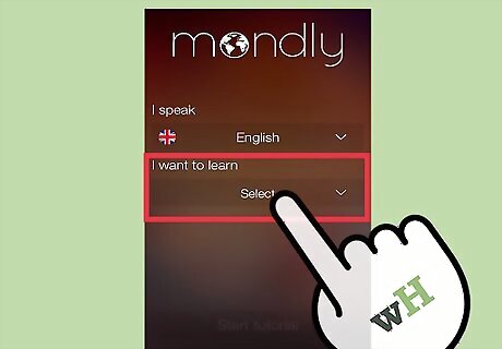 Choose your target language. Tap the dropdown menu under “I want to learn” and select the language you will be learning.
