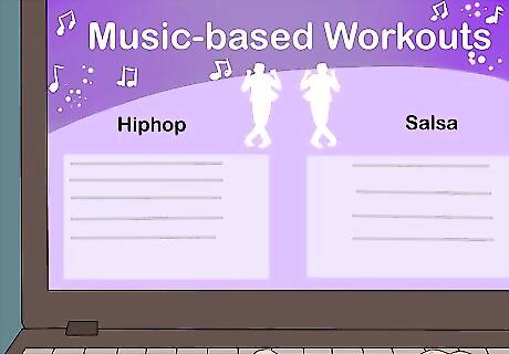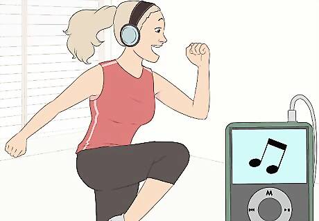 Use the Internet to find music-based workouts. You can learn hip hop or salsa routines through the Internet or workout videos. Learn several dance routines and do them to your favorite music, combining both mood-boosting and strategic music use.