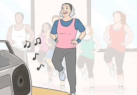 Take a Zumba class. These classes are designed to use moderate to high BPM Latin-based music and dance moves to focus on a cardiovascular exercise routine. Most gyms hold Zumba classes inspired by fun, energizing music. If you are embarrassed to dance in public, rent or buy a Zumba workout video. They are also available on instant streaming on Netflix or through many public libraries. Put on good cross-training shoes and do the routines. You may find that you workout more intensely if you raise the volume on your TV.