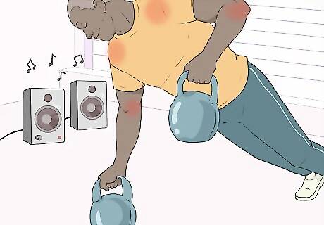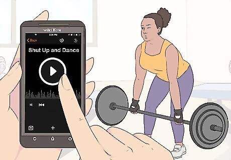 Play slow, steady music if you're lifting weights. This will help you focus on pacing your reps and sets. Music with between 90 and 120 beats per minute is perfect for lifting weights. Songs like Justin Timberlake's "Can’t Stop the Feeling" or Baauer's "Harlem Shake" are great choices.