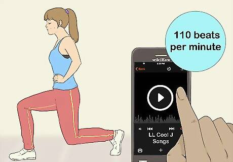Increase your cardiovascular workout with faster music. For this, select music that has at least 120 beats per minute. You may want to choose songs that slowly increase in BPM, working up to 138 BPM, such as "Sandstorm" by Darude. You can also try out the song "Put a Ring on It" by Beyoncé or "On the Floor" by Jennifer Lopez. Aerobic intensity increases as the tempo of your music increases.
