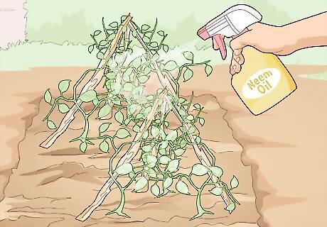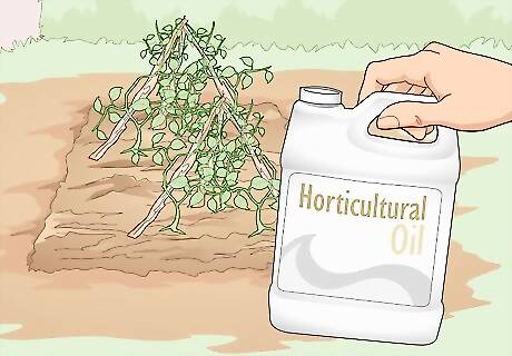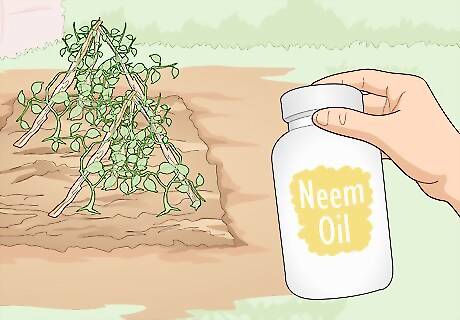 Spray ready-to-use neem and horticultural oil to cover your plants entirely. Neem and horticultural oil are typically pretty easy to apply. Just take the spray bottle out into your garden, turn the nozzle to the widest spray setting, and mist your plants directly. Don’t forget to hold the nozzle under the leaves and spray the undersides as well! You typically apply neem or horticultural oil every 7-14 days until the pest is gone. You can also spray it monthly as a preventative measure if you’re worried about pests showing up.