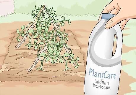 Choose an organic bicarbonate product to control fungi. If you’re dealing with a fungus in your garden, pick up an organic pesticide that contains sodium bicarbonate, which is the fancy scientific name for baking soda. Baking soda on its own isn’t great at fighting fungus, but when mixed with an oil-based product (like neem or horticultural oil), it’s great at killing common fungal infections. Baking soda on its own will damage your plants since the it will leave a toxic residue behind as it gets wet and dries out over and over.