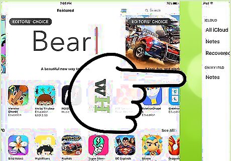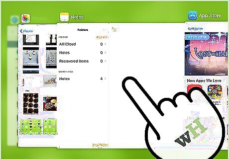 Tap the tab in the middle of the screen divider. This will transition your iPad to split view mode; your apps will both resize to fit the screen accordingly. Your left-hand app is your primary app, while your right-hand app is your secondary app.