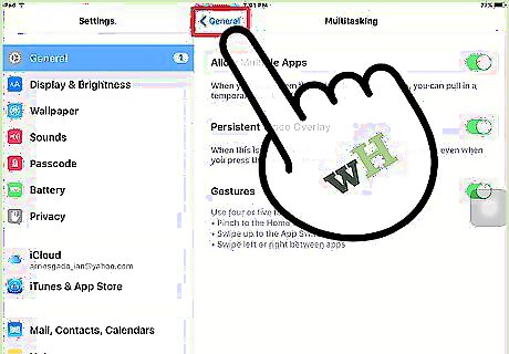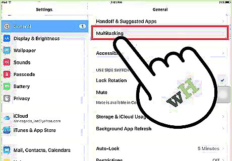 Scroll down to the "Multitasking" tab and tap it. Note that, if your iPad does not support multitasking actions, you will not see this option.