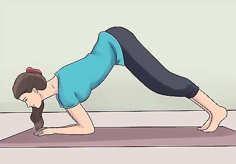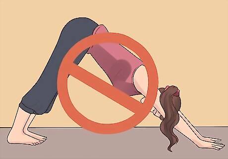 Try to avoid downward facing dog pose. This pose looks similar to dolphin pose, except that it places stress on your wrists, rather than on your forearms. In downward facing dog, you extend your arms as well as your legs so that you rely on your hands, wrists and feet for support.