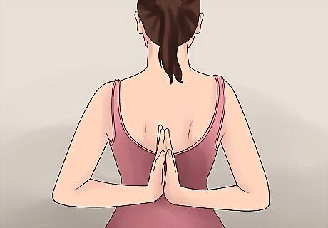Try Reversed Namaste or “Secret prayer pose”. This pose is suitable to do if you can do a full wrist flexion (you can fully bend your wrist) in the previous pose easily. This will deepen the stretch described in the previous step. To do the secret prayer pose: Bring your arms so that they are bent behind your back. Your elbows should be out and your palms should be facing each other. Press them together. Bend your body forward until it reaches the floor. Hold this position for one minute, then release.