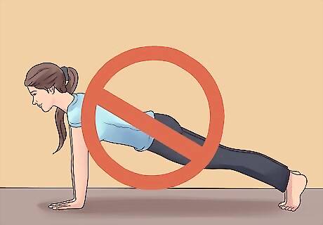 Do not do plank pose. This pose relies on the fact that you can plant your hands on the floor with your arms extended, supporting your body weight. This position places a lot of tension on your wrist, and can squeeze your median nerve, leading to a burning sensation in your hands and wrists. This is also considered the push-up position.