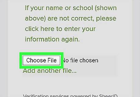 Browse for a document verifying your current college enrollment. You can upload a file from your email or from a folder on your computer that has the name of the university and your name on it. Documents acceptable for uploading include: a class schedule, transcript, or a receipt of registration/tuition with an issue date from the last 3 months.