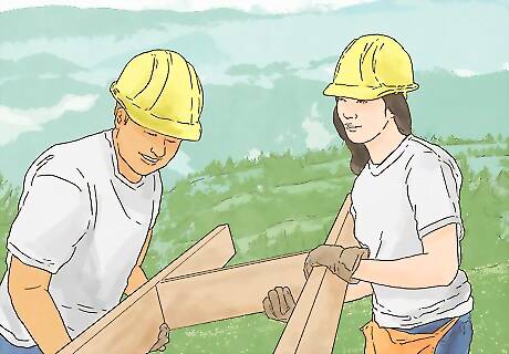 Join a building effort. Non-profit organizations like Habitat for Humanity help build and repair homes for people in need. This is a great way to benefit a family while working with a close-knit group of volunteers and enjoying some time outside. Construction projects are ongoing, so you can lend a hand for a few days or the entire week as your schedule permits. Get a group of your friends together to volunteer with you. You’ll have fun and get even more accomplished in the process. You don’t need to be experienced to help out—building tasks tend to be simple and rely on the manpower of the group rather than specialized skills.