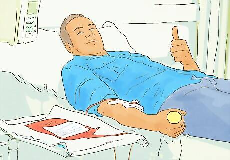 Help out with a blood drive. Donated blood is used to supply transfusions for the sick and injured. Look into volunteer positions with groups like the Red Cross, or consider giving blood yourself. By participating in a blood drive, you have the potential to help save lives. Try volunteering at local health clinics, or find out where mobile blood drive units might be popping up nearby. For safety reasons, you may not be able to donate blood more than once, but it will still be a worthwhile use of your time.