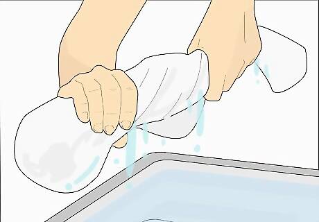 Remove the sweater from the water and squeeze out the excess water. After letting it soak, lift the sweater out of the water and hold it over the sink or washbasin. Ball or roll it up loosely, then squeeze it very gently to remove some of the excess water. Make sure that you don’t twist the sweater to wring it out, as this can stretch it out.