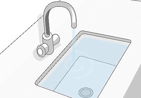 Fill up a clean sink with room temperature water. First, wipe down your sink with an all-purpose cleaning wipe or spray and a paper towel. Rinse the sink with water to remove any cleaner residue. Then, fill the sink with room temperature water. While warm water tends to be more effective at removing stains, it could make the dyes in your sweater bleed or cause the sweater to shrink after you wash. You can also use a shallow plastic or enamel wash basin.