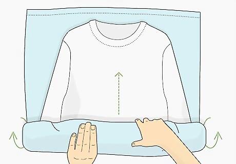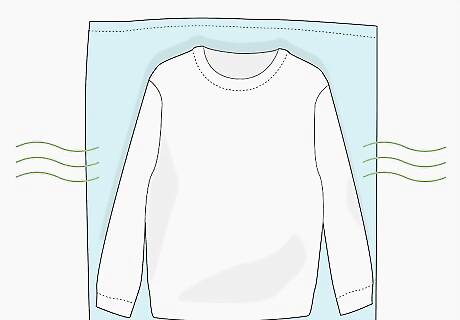 Roll the sweater in a clean towel to start to dry. Lay out a clean towel on a flat surface. Then, lay the sweater on top of the towel, making sure that it doesn’t hang over the sides of the towel anywhere. Starting at the top, slowly roll the towel with the sweater inside. Press down lightly on the roll to get the towel to absorb more water, then slowly unroll the towel and sweater back open. At this point, if the towel has gotten really soaked, you may want to replace it with a dry towel to speed up the drying process.