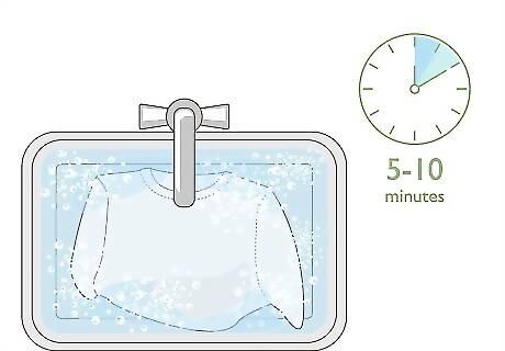 Leave the sweater to soak for 5 to 10 minutes. This will give the detergent time to seep into the fabric and break down any stains. If the sweater is particularly dirty or has a stubborn stain, you may want to gently swish it around every so often to stir up the detergent.
