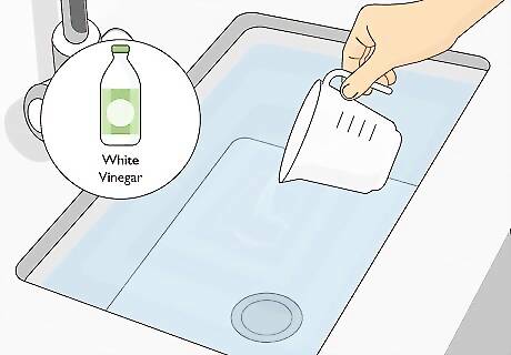 Mix in white vinegar if you want to neutralize odors. If the sweater(s) you’re washing smell as a result of perspiration, stains, or any other reason, mix ⁄4 cup (180 mL) of white vinegar into the detergent water. Swish the vinegar around until it’s combined.