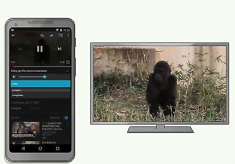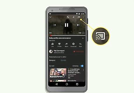 Tap Cast or Android 7 Cast. You'll see the cast icon, which looks like a computer monitor with curved bars, near the top of the video. If you're using Chrome, Cast is near the middle of the menu. Your phone, tablet, or computer will begin scanning for Chromecasts on the network. You will only be able to connect to the Chromecast if you've connected your phone, tablet, or computer to the same Wi-Fi network. If the Chromecast doesn't appear as an option, double-check your Wi-Fi connection.