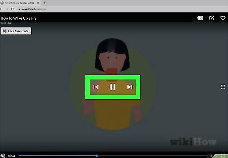 Hover the cursor over the video to access the video player controls. While a video is playing, you can pause, skip, mute, or restart the clip as needed. Once you bring up the controls, you can do any of the following: To go back to the previous video, click the arrow pointing left. To skip to the next video, click the arrow pointing right. Click the two lines at the center to pause, and then click Play to resume when you're ready. Click the bracketed square at the bottom-right corner to toggle full-screen mode on and off. Drag the slider at the bottom of the video to move ahead or backward in the current clip. To open the currently-playing video on YouTube, click the YouTube icon (the rounded rectangle with a triangle inside) at the top-right corner. To save a video to your favorites, click the heart at the top-right corner. Your favorites will be accessible in the Favorites tab.