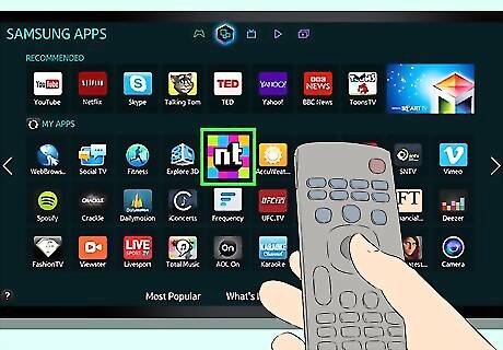 Open Neverthink from your TV's Apps menu. Its icon contains many multicolored squares and displays the word "neverthink" or the letters "nt" in pixelated letters. Once you launch the app, the video stream will begin to play.