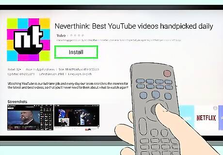 Install the Neverthink app from your TV's app store. For example, if you have an Apple TV, you can find Neverthink in the App Store on the main menu—just tap GET once you find the app. If you have a Samsung Smart TV, open your TV's Apps page, and then select the magnifying glass to search for the app, and then tap Install to get it. The Neverthink is available for all of the following Smart TVs: Apple TV, Android TV, Portal and Portal TV from Facebook, Amazon Fire TV, Oculus TV, and Samsung Smart TV.