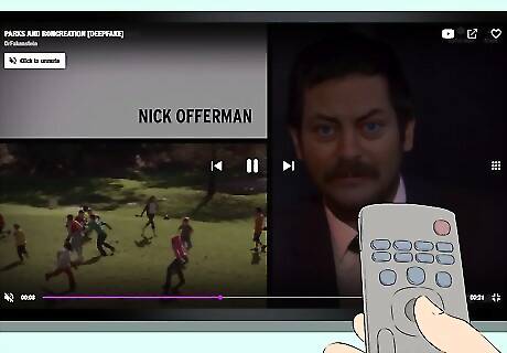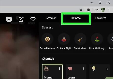 Click the Remote tab to open your remote control. This tab is near the top-right corner of the page. This displays a panel of buttons along the right side of the page which acts as your remote control. To hide the remote, hover your mouse cursor over the video, then click the small icon of 9 squares on the video's rightmost edge. Unhide the remote control by clicking the icon again.