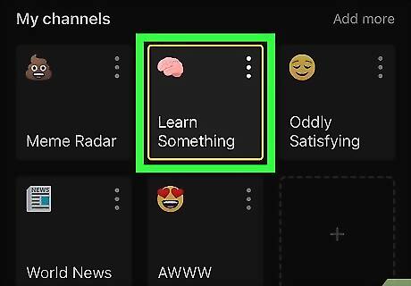 Click a channel to start watching. Under the "Channels" header, you'll find a list of tiles displaying icons and categories. Scroll down to check out the channel names and icons, then click a channel to start watching. To view a brief description of a channel, click the three-dot menu at the top-right corner of its tile. To move a channel you like to the top of the remote, click the three-dot menu on its tile and select Move to top. The round icons at the top of the remote are called specials, which are similar to the "Stories" you'll find in apps like Instagram and Facebook. When you click a special, a number will appear at the icon's top-right corner, indicating how many clips remain in that special. Once the special ends, the next special in the list will begin automatically.