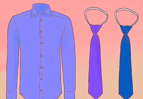 Pair different tie textures with solid colored shirts. An example of a great tie texture choice is crochet, which is made from unique chain stitches. But really, anything that helps the tie pop out a bit over a solid colored shirt, such as blue. In terms of tie color, black is always safe, as are deeper variations of your shirt's color. For a blue shirt, a tie color like vivid indigo or cobalt works great. If you wear a patterned tie, go with a large-scale pattern for the best results.