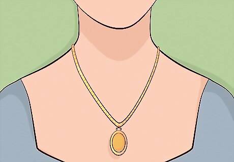 Select a chain. Choose a chain that allows the locket to sit at your collarbone, by your heart, or just below your bustline. Alternately, choose a long slide chain if you want the locket to sit near your naval. Opt for thin chains if your locket is dainty and formal. Fine chains with a larger locket make a nice statement, but be sure the locket isn’t too heavy for the chain and that the chain can handle its weight. Wear a thin or chunky chain for a casual vibe. Wrap or double-wrap a slider chain to change the length of your necklace. Try different chains with the same locket for different ways to wear the same pendant.