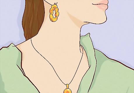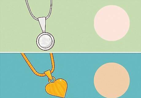 Match other jewelry to your locket. If you wear other jewelry, try to keep the metal or shade consistent with that of your locket. Keep earrings minimal so as not to distract from your locket. Try bracelets with charms to mimic the dangle of your locket pendant. For example, you may want to wear simple hoops or stud earrings.
